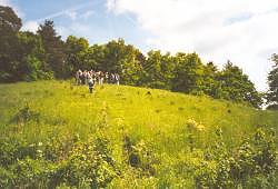 Als letzter Exkursionspunkt wurden die relativ niedrigen Hügel VII und VIII aufgesucht. Hier liegen Niedermoorwiesen, Halbtrockenrasen und thermophile Laubmischwälder unmittelbar nebeneinander und vermitteln noch das Bild eines Landschaftsparks, welches im Bereich der anderen Hügel durch die Verbuschung der letzten 50 Jahre größtenteils zerstört ist. Insbesondere die Übergangsbereiche an den Hügelrändern sind floristisch von Bedeutung. Ihre Verbuschung führte zum Verlust einiger sehr seltener Arten im Gebiet, z. B. von Aquilegia vulgaris.